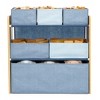 - QUALITY CONSTRUCITON: Well- constructed, wood frame and durable fabric bins