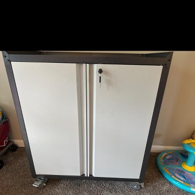 Garage Storage Cabinet with Wheels, 35.43" Locking Steel Rolling Tools Chest, Metal Storage Cabinet with 1 Shelves, Light Gray & Dark Gray