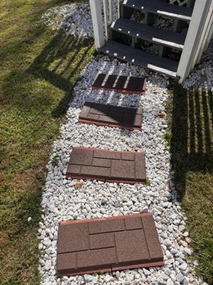 [This review was collected as part of a promotion.] Love love these, they go perfect with my walk way they give it the perfect touch their are so many possibilities with these on what you could do I debated on what exactly I wanted to do with them I may switch it up and put them under my outside trash cans but for now I want to get more and finish my walk way. They are heavy not super heavy but heavy enough lol. They have a beautiful design on top reminds me out bricks in different directions. It feels like a rubber material and I can’t wait to see how it holds up for ice and snow. I have a feeling it will be a safe step for ice and snow they stay in place well it has traction to stay firm where you place them. These would Look nice in a garden as well theirs just so many possibilities you can do with your outside I can’t wait to get more of these they are 10”x24” they are great size affordable and I highly recommend these to spruce up any outdoor area. I love the material and I love the quality they bring to how well it looks the material is flexible and durable and thick you’re going to love the way your outdoor area looks !