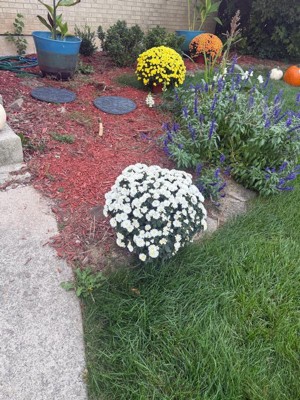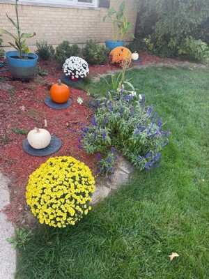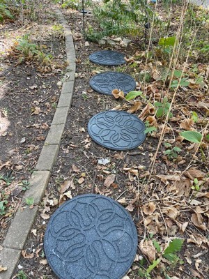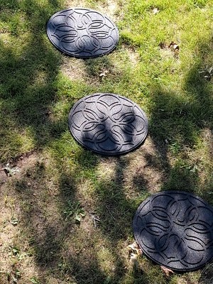 [This review was collected as part of a promotion.] I first thought to use the stepping stones as they were intended, to created a path. After moving things around in my front lawn area, I decided to use them as a platform to display my fall Mums and Pumpkins. It is possible that I will use them as actual stepping stones in the Spring as they will be functional to water flowering plants and shrubs without stepping in the colored mulch which sometimes transfers dye onto my shoes.
