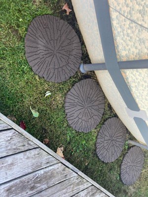 Recycled rubber stepping stones are easy to install, require no maintenance and look natural. They're perfect for creating enchanting walkways or paths in gardens and backyards. The rubber surface is impact absorbing and protects shoes from dirt, even in wet and muddy yards, and the raised textured design provides traction for stability. They are protected in all weather, durable, lightweight, and easy to clean, which means there is no need to swap out these stepping stones during the winter months.