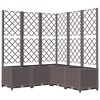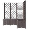 - This garden planter with trellis mixes practicality with style, made to brighten up your outdoor spots. Designed to fit nicely into your garden or balcony, it gives you loads of space for the plants you love, helping you create a lovely green oasis that adds charm to your home. Spacious Design: The planter has loads of space for plants and flowers, making it a great pick for gardeners wanting to make the most of their planting area.Durable Material: Made from high-quality polypropylene, this planter withstands weather changes, helping your plants thrive throughout the seasons.Elegant Trellis: The trellis is perfect for climbing plants, letting them grow up while adding a splash of interest to your outdoor look.Textured Finish: The textured surface adds visual appeal and improves handling, making it not only practical but stylish too.Weather-Proof: Built specifically for outdoor use, this planter stands strong against all sorts of climate conditions, keeping your plants safe and sound. Color: BrownShape: RectangularMaterial: Synthetic PolypropyleneFinish: TexturedIndoor/Outdoor: Outdoor OnlyRoom: Garden and terraceCapacity: Lots of green plants and flowersDimensions: 47.2 x 47.2 x 53.5 in (W x L x H)Weight: 36.11 lbsDrainage: NoDelivery Contains: Planter with trellisAssembly Required: YesRecommended Number of People for Assembly: 1