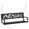 - This Garden Swing Bench is the ideal outdoor seating solution for chill moments in your garden, patio, or balcony. With its charming rose-patterned backrest and sturdy build, it effortlessly combines style and comfort for two, inviting you to relax and soak up nature. Stylish Floral Design: The rose-patterned backrest creates a charming and inviting atmosphere, making it a lovely addition to your outdoor decor. Sturdy Construction: Built from tough steel and synthetic plastic, this swing bench promises durability and stability, ready to face all sorts of weather. Comfort for Two: Made to comfortably seat two adults, the flat armrests offer extra support while you kick back together in your outdoor space. Easy to Assemble: This product comes with all the bits you need to set it up quickly. Maintenance Made Easy: The smooth surface of the materials allows for simple cleaning, keeping its elegant look with little effort. Color: BlackPattern: Floral (Motifs featuring flowers and plants)Shape: RectangularMaterial: Metal SteelFinish: MatteIndoor/Outdoor: Outdoor OnlyCover Included: NoRoom: Garden and terraceCapacity: 2 peopleMaximum Number of People: 2Mounting Included: All included to mountDimensions: 49.2 x 49.2 x 16.5 in (W x L x H)Weight: 26.68 lbsSeat Depth: 21.1 inSeating Capacity: 2Swings: YesDelivery Contains: 1 x Swing benchAssembly Required: YesRecommended Number of People for Assembly: 2