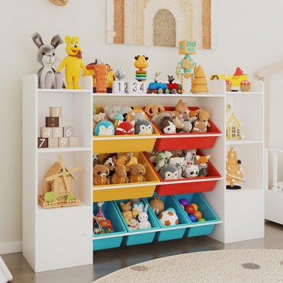 Garden Tool Organizer With Wheels & Basket,Yard Storage Rack with 6 Shelves,Freestanding Garage Tool Organizer for Yard Shed and Lawn
