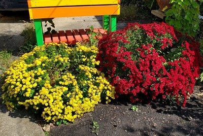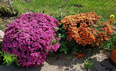 A few years ago I planted some hardy mums on a lark, figuring they would die over the winter. They did not, they are so healthy that they get top heavy. The cages keep them mostly round.