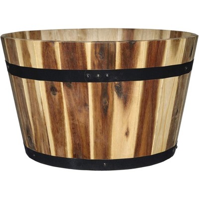 Gardenised Rustic Wooden Whiskey Barrel Planter with Durable Medal Handles and Drainage Holes - Perfect for Indoor and Outdoor Use - Medium