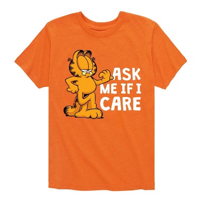 Garfield - Ask Me If I Care - Men's Short Sleeve Graphic T-Shirt - Bring the humor and laziness of the famous orange cat to your wardrobe with Garfield graphic apparel. Featuring Garfield, Odie, and Jon, these designs celebrate the iconic comic strip and its beloved characters.
