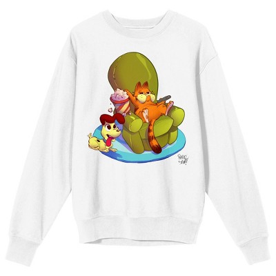 Garfield Characters Lounging Crew Neck Long Sleeve White Adult Sweatshirt-XL