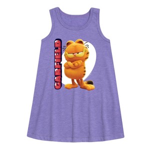 Garfield - Garfield Movie Vertical - Toddler & Youth Girls A-line Dress - Bring the humor and laziness of the famous orange cat to your wardrobe with Garfield graphic apparel. Featuring Garfield, Odie, and Jon, these designs celebrate the iconic comic strip and its beloved characters.