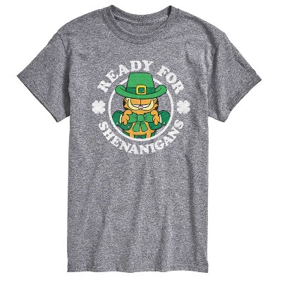 Garfield Rainbow Shamrocks Patrick's Day - Men's Short Sleeve Graphic T-Shirt - Bring the humor and laziness of the famous orange cat to your wardrobe with Garfield graphic apparel. Featuring Garfield, Odie, and Jon, these designs celebrate the iconic comic strip and its beloved characters.