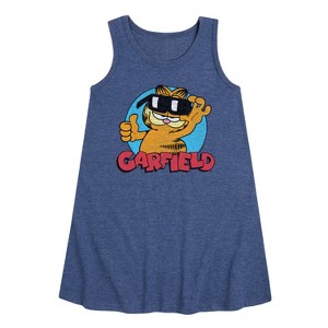 Garfield - Garfield Sunglasses - Toddler & Youth Girls A-line Dress - Bring the humor and laziness of the famous orange cat to your wardrobe with Garfield graphic apparel. Featuring Garfield, Odie, and Jon, these designs celebrate the iconic comic strip and its beloved characters.