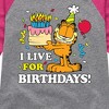 Girls' - Garfield - I Live For Birthdays Shirt Tail Raglan Graphic T-shirt - 1 of 3