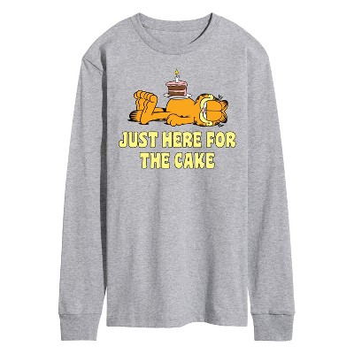 Garfield - Just Here For Cake Birthday - Men's Short Sleeve Graphic T-Shirt - Bring the humor and laziness of the famous orange cat to your wardrobe with Garfield graphic apparel. Featuring Garfield, Odie, and Jon, these designs celebrate the iconic comic strip and its beloved characters.