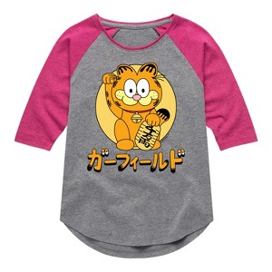 Girls' - Garfield - Lucky Cat Shirt Tail Raglan Graphic T-shirt - 1 of 3