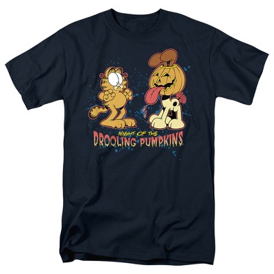 Garfield Drooling Pumpkins Adult T-Shirt Navy