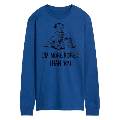 Garfield - More Bored Than You - Men's Short Sleeve Graphic T-Shirt - Bring the humor and laziness of the famous orange cat to your wardrobe with Garfield graphic apparel. Featuring Garfield, Odie, and Jon, these designs celebrate the iconic comic strip and its beloved characters.