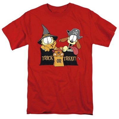 Garfield Trick Or Treat Adult T-Shirt Red