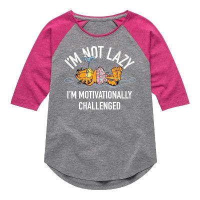 Garfield - Pretend I'm Listening - Toddler And Youth Girls Raglan Graphic T-Shirt - Bring the humor and laziness of the famous orange cat to your wardrobe with Garfield graphic apparel. Featuring Garfield, Odie, and Jon, these designs celebrate the iconic comic strip and its beloved characters.