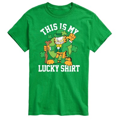 Garfield - Ready For Shenanigans Patrick's Day - Men's Short Sleeve Graphic T-Shirt - Bring the humor and laziness of the famous orange cat to your wardrobe with Garfield graphic apparel. Featuring Garfield, Odie, and Jon, these designs celebrate the iconic comic strip and its beloved characters.