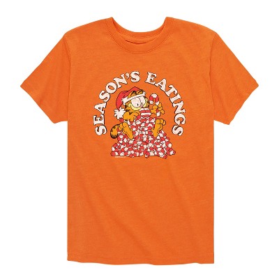 Garfield - Seasons Eatings Christmas - Men's Short Sleeve Graphic T-Shirt - Bring the humor and laziness of the famous orange cat to your wardrobe with Garfield graphic apparel. Featuring Garfield, Odie, and Jon, these designs celebrate the iconic comic strip and its beloved characters.