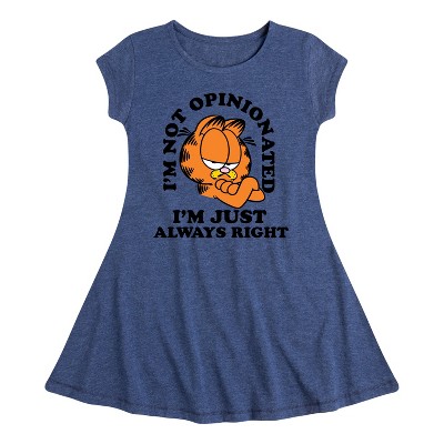 Garfield - Sigh Garfield - Toddler & Youth Girls Fit & Flare Dress - Bring the humor and laziness of the famous orange cat to your wardrobe with Garfield graphic apparel. Featuring Garfield, Odie, and Jon, these designs celebrate the iconic comic strip and its beloved characters.
