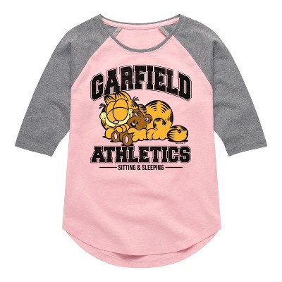 Garfield - Whatever - Toddler And Youth Girls Raglan Graphic T-Shirt - Bring the humor and laziness of the famous orange cat to your wardrobe with Garfield graphic apparel. Featuring Garfield, Odie, and Jon, these designs celebrate the iconic comic strip and its beloved characters.