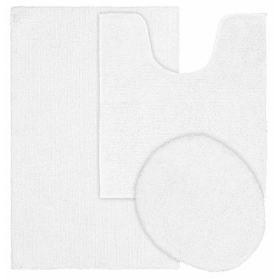 - Set Includes: 21-in x 24-in Contour Rug, 17-in x 24-in Bath Rug, and a 20-in x 34-in Bath Rug