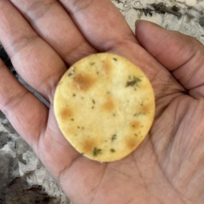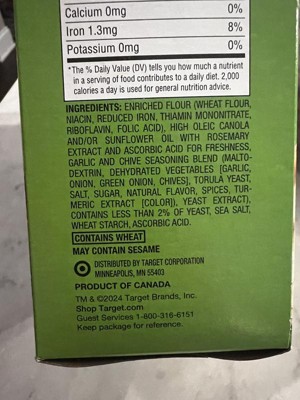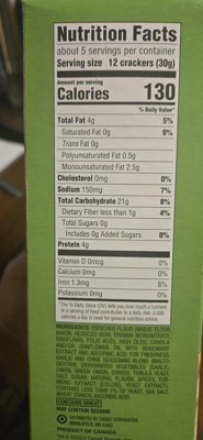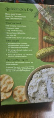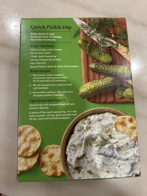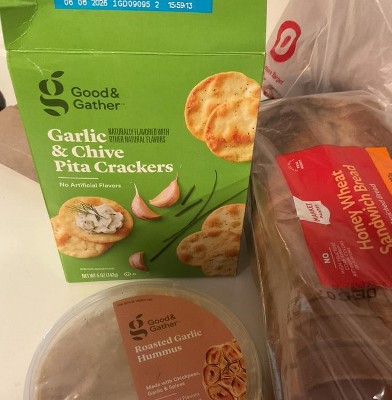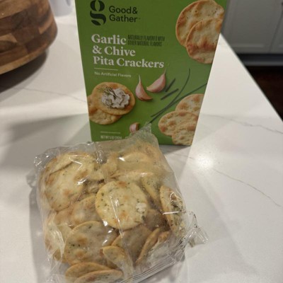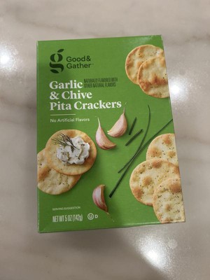 The garlic and chive pita crackers by Good & Gather are a really yummy snack. Perfect for a charcuterie board, paired with a dip or even plain. Great flavor and crunch. It's a rather small package (5oz) so you would need more than one if planning to serve a crowd.
