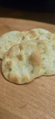 Nice and additive- you can’t just have one! I love how the crackers are light but have a slight crisp to them. The garlic and chives flavor really come out as accent tastes but not overly powering. Great alone or with dip.