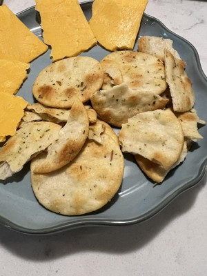 [This review was collected as part of a promotion.] I don't think I've ever had pita crackers before because I thought they'd be like pita chips but I was wrong. They are light, crispy, flakey round crackers that look like tiny pitas. I enjoyed the garlic and chive flavor. It's nothing wildly unique but it works. I served them with a goat cheese dip that I happened to have on hand but I know they'd be even better with a tzatziki or tahini dip. I received an incentive to write this review.