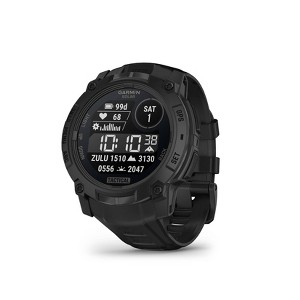 Dare for more with Instinct® 3 – Tactical Edition, the rugged GPS smartwatch with solar charging for unlimited battery life in smartwatch mode (assumes all-day wear with 3 hours per day outside in 50,000 lux conditions) and a built-in flashlight. With a bolted construction, metal-reinforced bezel and scratch-resistant lens, it can take on the toughest missions. It’s engineered to MIL-STD-810 standards for thermal and shock resistance and is also 10 ATM water-rated. Purpose-built tactical features include a rucking activity, stealth mode, kill switch and preloaded Applied Ballistics® solver (requires one-time purchase via the AB Quantum mobile app). Stay on track with a built-in 3-axis compass and barometric altimeter as well as multi-band GPS with SatIQ™ technology, which delivers superior positioning while also optimizing battery life. Its 24/7 health and wellness features keep you connected to your body with heart rate tracking, advanced sleep monitoring, Pulse Ox and more (this is not a medical device, and data presented is intended to be a close estimation of metrics tracked; Pulse Ox not available in all countries).