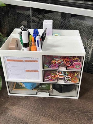Garnen Pen Holder Desk, Pencil Holder Desk, Pen Organizer for Desk, Small Desk Organizer Caddy with Drawer for Vanity Desktop