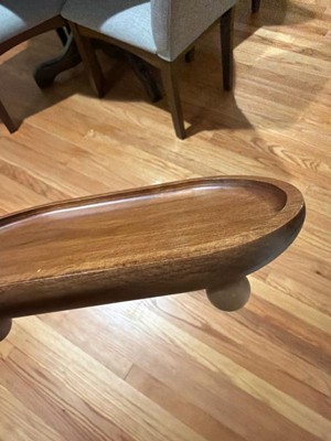 Garnen Kitchen Décor Wooden Tray Acacia Wood Tray for Coffee Table Bathroom Vanity Counter, Oval Pedestal Stand Wood Riser Tray Candle Jewelry Holder