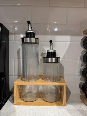[This review was collected as part of a promotion.] The Garnen Oil and Vinegar Dispenser Set is a stylish and practical addition to any kitchen. The clear glass bottles with stainless steel pour spouts make pouring smooth and controlled, while the included wooden rack keeps your countertop neat and organized. It’s a great combo of function and aesthetic, perfect for everyday cooking and serving at the table. A lovely way to keep your favorite oils and vinegars easily accessible!