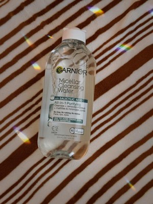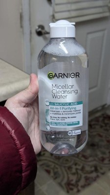 - All-In-1 Micellar Cleansing Water: Garnier Micellar Cleansing Water with Salicylic Acid is a face makeup remover, eye makeup remover, and facial cleanser formulated for oily and acne-prone skin to remove makeup, mattify skin all day and minimize pores in just one step
