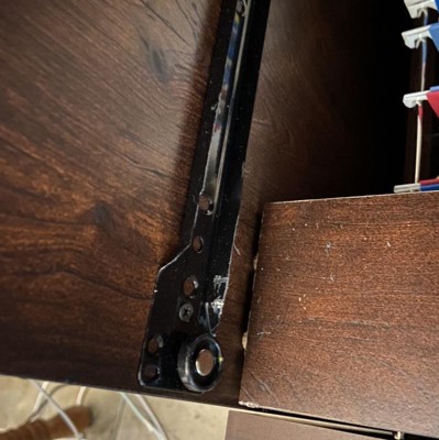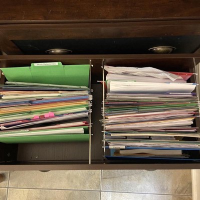 This item cannot function as a filing cabinet without falling apart. It might (just maybe) work to hold bags of chips, cotton balls, or stuffed animals (but not the ones with the plastic beads for heft). But goodness forbid that you want to use thus Filing Cabinet to hold files! I didn’t even have the top drawer at over half capacity for papers and the metal runners gave out. It started as an ominous clicking when I’d open and close the drawer and quickly escalated to the drawer trying to fall out on me. Upon removal I found that the metal runners are mangled—looks like they fatigued (under a VERY light file load) to the point where they wouldn’t retain the drawer and then collapsed under the weight of the drawer when it was opened (nearly got my toes if I hadn’t been quick to catch it). See the photos: this was NOT an overloaded drawer. Do NOT buy this file drawer to use for files—it’s a hazard. It was also a pain to assemble and I’m a mechanical engineer. I figured it would be worth the hassle to have a sturdy piece but it seems the manufacturer cut corners in the runners’ design/materials, which led to metal fatigue under normal use conditions. Of course it didn’t happen until after the return window closed. It was also failing in a more annoying way: the bars to hold hanging files have been popping out of the shallow holes in the composition wood, gouging as they go, which makes it even more prone to slipping out (and taking the hanging files with it)—see last 2 pics. Disappointed in the quality for the price.