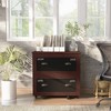 We chose this filing cabinet because the wood color appeared to match other items in our home office and it did. It is quite a job to assemble (it took 2 people 3 hours to assemble). Then we loaded it with files. When we pulled out the bottom drawer next, the entire drawer came apart even though we followed all the directions to a tee (gluing in pegs, etc.). We have now added additional glue to the base and clamped it and we will let you know if this helps the drawer stay assembled. If not, this cabinet will be returned to Target.