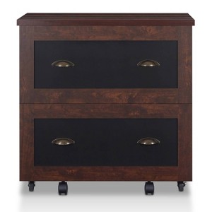 24/7 Shop At Home Garon Rustic 2 Drawer Filing Cabinet Walnut: Industrial Brass Handles, Chalkboard Inserts