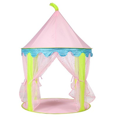 With mesh windows and a cute pink curtain, it is ideal for both indoor and outdoor fun.