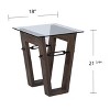 Add authenticity to your home design with this reclaimed wood side table. Iron accents give your living space an industrial feel, while the spacious glass tabletop easily holds a table lamp and your favorite book. Place this square accent table in your entryway to hold your keys or a potted plant, or slide alongside your living room sofa as a convenient side table. Enjoy a rustic, reclaimed look when you bring home this glass-top end table.