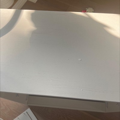 This item is not the color of the photo. Is more of a cream or grayish white. Also is a paint which chips easily. Would not recommend purchasing unless you want white painted dressers. I contacted target and the only resolution was to return the items however they were already unboxed so just decided to keep.