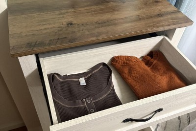 Beautiful, sturdy, elegant. Easy to build with 2 people or even alone. Only con is that the drawers are extremely shallow, this was the deepest I could find with this finish, but wasn’t very impressed. I’ve reorganized everything in my room to accommodate the shallow drawers. Only reason 4 stars. The drawers are soft-close drawers so feels more expensive then it is. It’s truly beautiful and ties in my room perfectly.