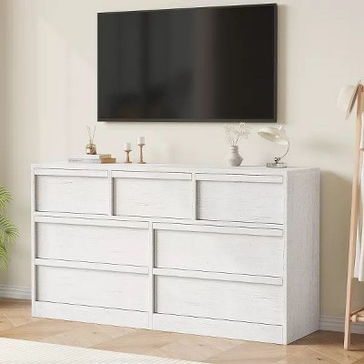Garvee 7 Drawer Dresser for Bedroom, White 7 Chest of Drawers Tall with Concave Handles, Wooden Dresser Organizer for Living Room Nursery Entryway