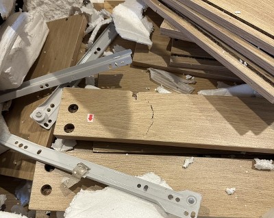The box came destroyed and everything was just thrown in. Could barely get the dresser inside. Wood pieces were also cracked. Tried to see if we could assemble to avoid returning and it was not possible with the condition of it.