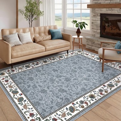 Garvee Area Rug Geometric Bordered Rugs for Living Room Washable Braided Print Carpet