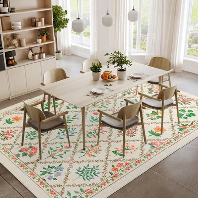 Garvee Area Rugs for Living Room Floral Bordered Rug Braided Print Area Rug Soft Non Slip Low Pile Carpet Home Decor