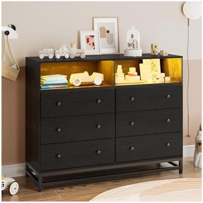 Garvee Elegant Black 6-Drawer Dresser with Gold Handles & -