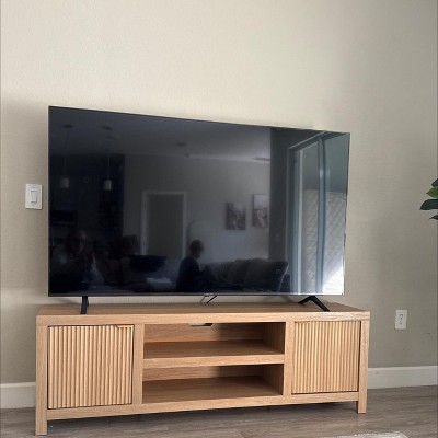 DIMENSION: The TV console measures 70.1” L x 15.7” W x 23.1” H and fits TV up to 80 inches. It features four separate storage compartments, and the fluted door design lets you customize hidden or display areas as you prefer