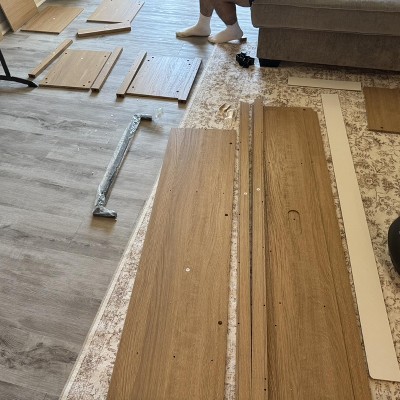 I was hesitant to purchase because of the lack of positive reviews, but it surprisingly turned out amazing. It took about an hour to assemble and all of the pieces were there and in tact. The dimensions were accurate and it perfectly holds our 65 inch tv. Got it on sale during Target circle week so it was an amazing deal!