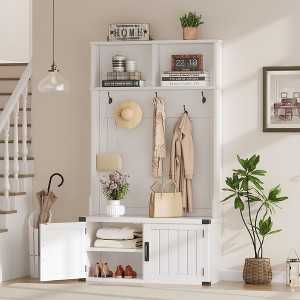 Garvee Hall Tree with Bench & Shoe Storage, 3-in-1 Wider Entryway Bench with Coat Rack & Adjustable Shelf, Farmhouse Hall Tree